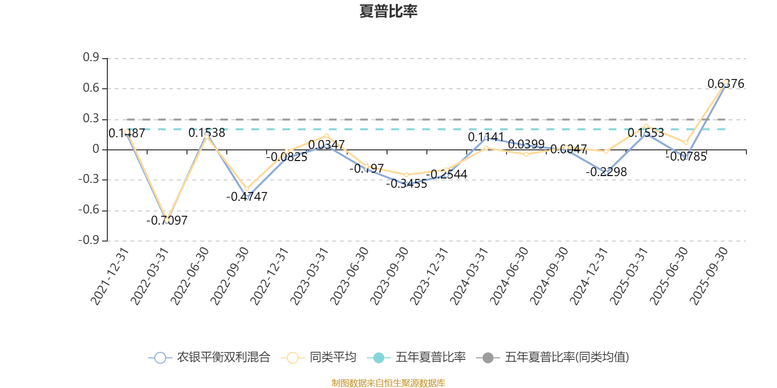 截至9月30日,基金近三年夏普比率为0.2587,位于同类可比基金92/119。