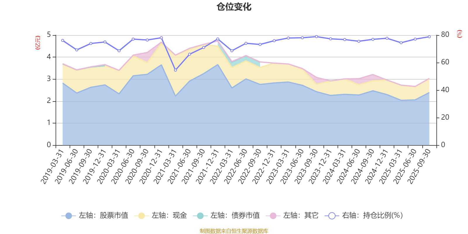 据定期报告数据统计,近三年平均股票仓位为77.11%,同类平均为67.23%。2023年三季度末基金达到78.89%的最高仓位,2021年一季度末最低,为54.56%。
