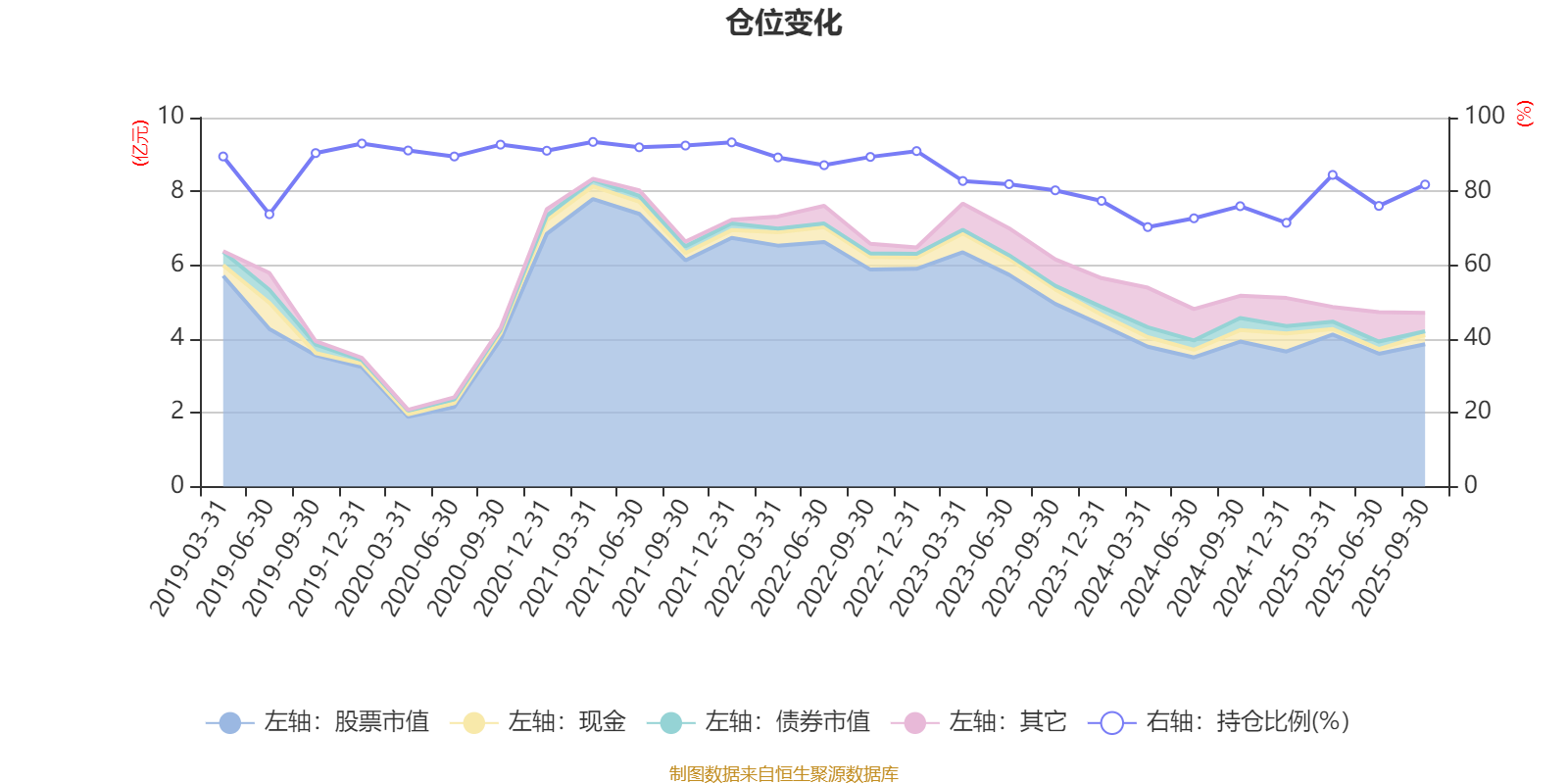 据定期报告数据统计,近三年平均股票仓位为78.86%,同类平均为85.48%。2021年一季度末基金达到93.41%的最高仓位,2024年一季度末最低,为70.33%。