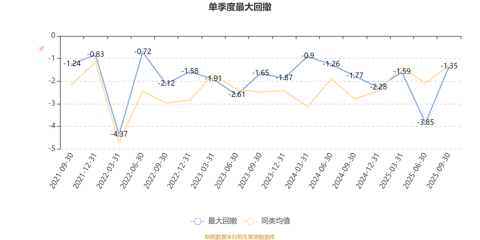 截至10月24日,基金近三年最大回撤为5.1%,同类可比基金排名205/552。单季度最大回撤出现在2022年一季度,为4.37%。