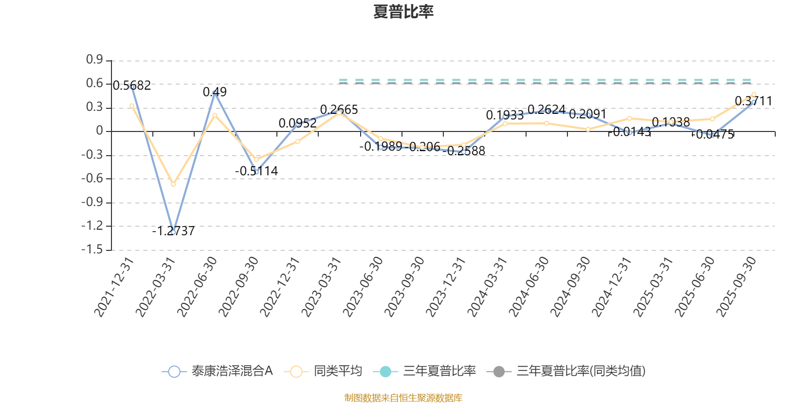 截至9月30日,基金近三年夏普比率为0.6541,位于同类可比基金271/553。