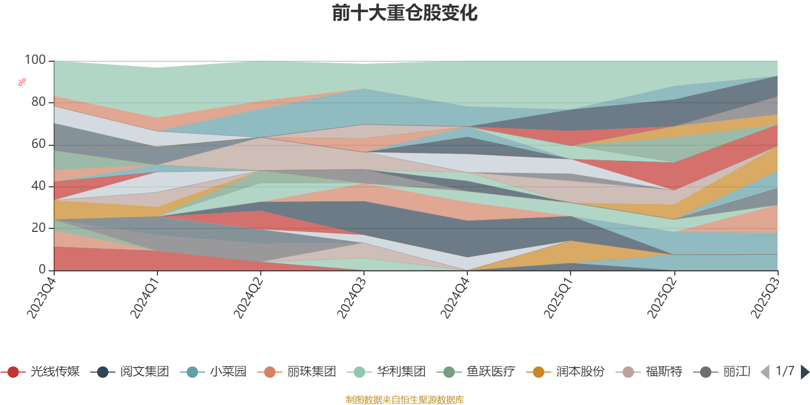 该基金持股集中度较高,近2年前十大重仓股集中度长期超过60%。截至2025年三季度末,基金十大重仓股分别是宁德时代、完美世界、海大集团、上美股份、安克创新、名创优品、长城汽车、杰克科技、小菜园、德康农牧。