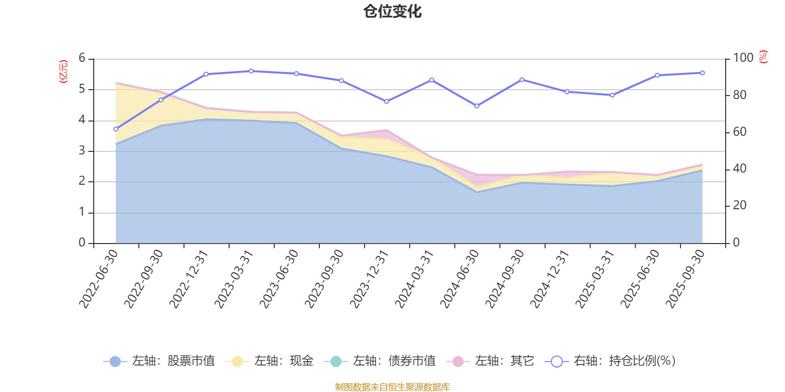 据定期报告数据统计,近三年平均股票仓位为86.63%,同类平均为85.48%。2023年一季度末基金达到93.38%的最高仓位,2022年上半年末最低,为61.91%。