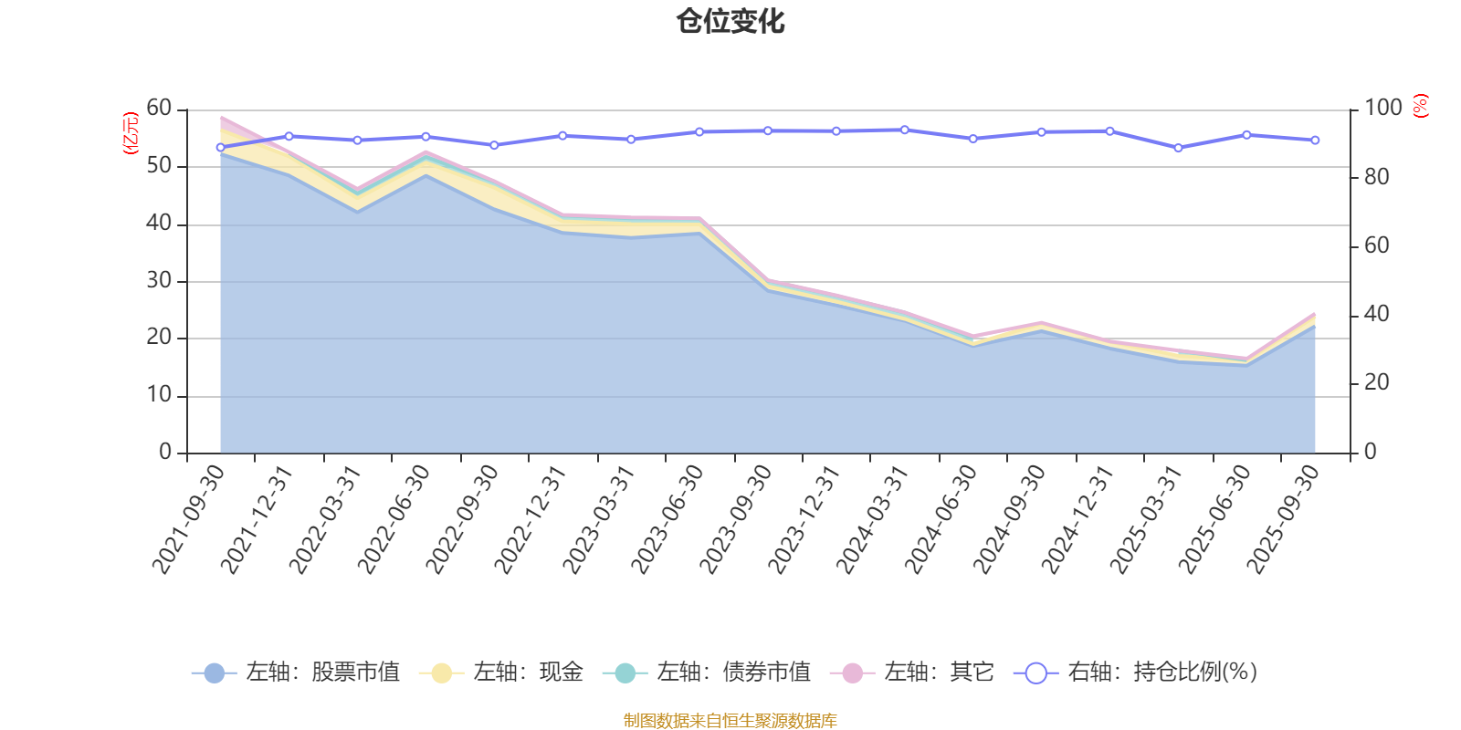 据定期报告数据统计,近三年平均股票仓位为92.5%,同类平均为87.54%。2024年一季度末基金达到94.1%的最高仓位,2025年一季度末最低,为88.83%。