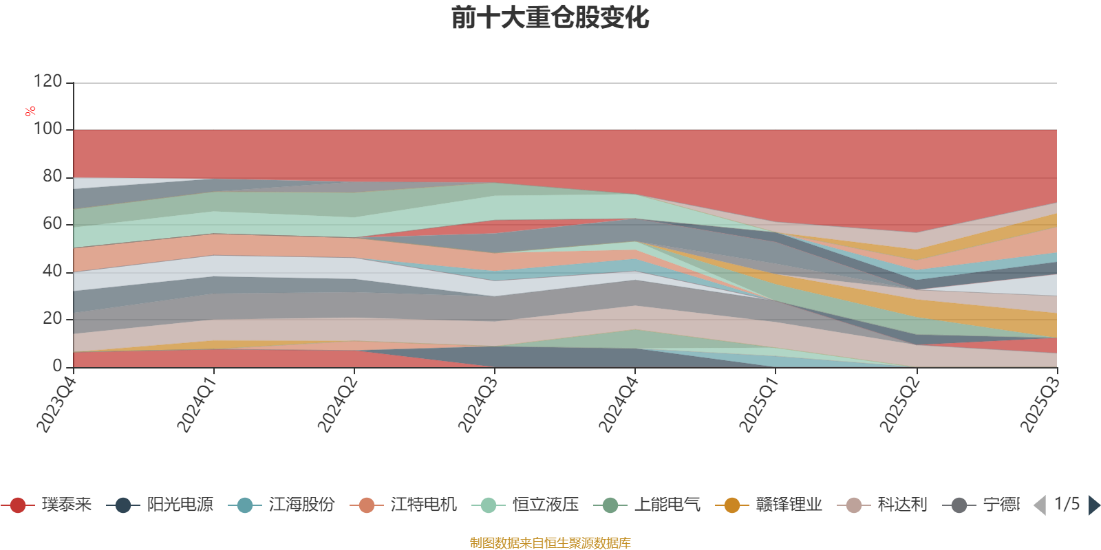 该基金持股集中度较高。截至2025年三季度末,基金十大重仓股分别是英维克、华丰科技、麦格米特、寒武纪、欧陆通、科达利、南亚新材、铂科新材、杰华特、中芯国际。