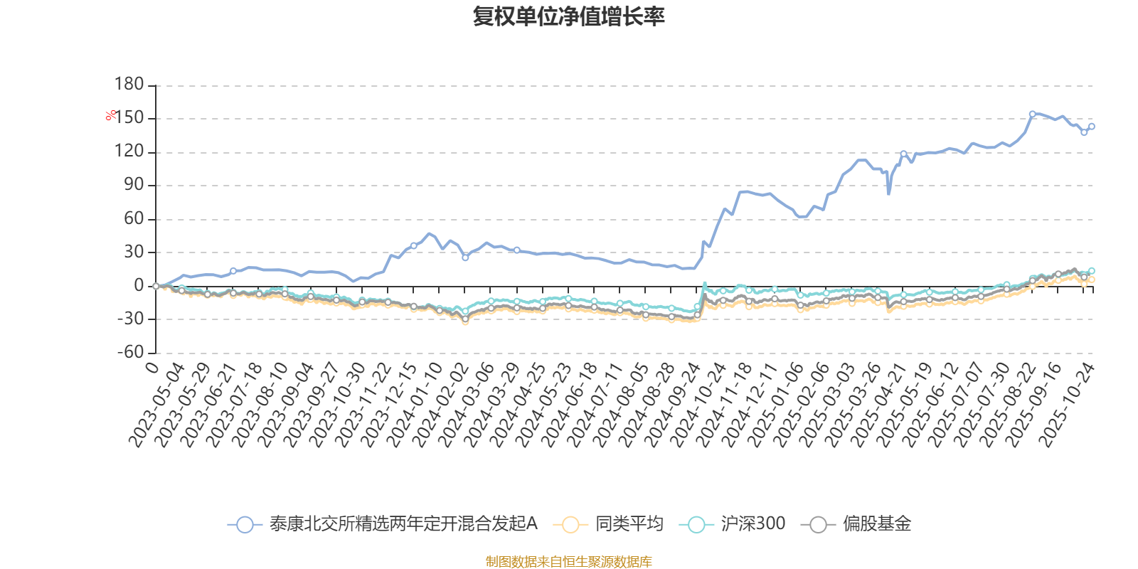 AI基金泰康北交所精选两年定开混合发起A(016325)披露2025年三季报,第三季度基金利润876.52万元,加权平均基金份额本期利润0.1591元。报告期内,基金净值增长率为6.98%,截至三季度末,基金规模为1.34亿元。