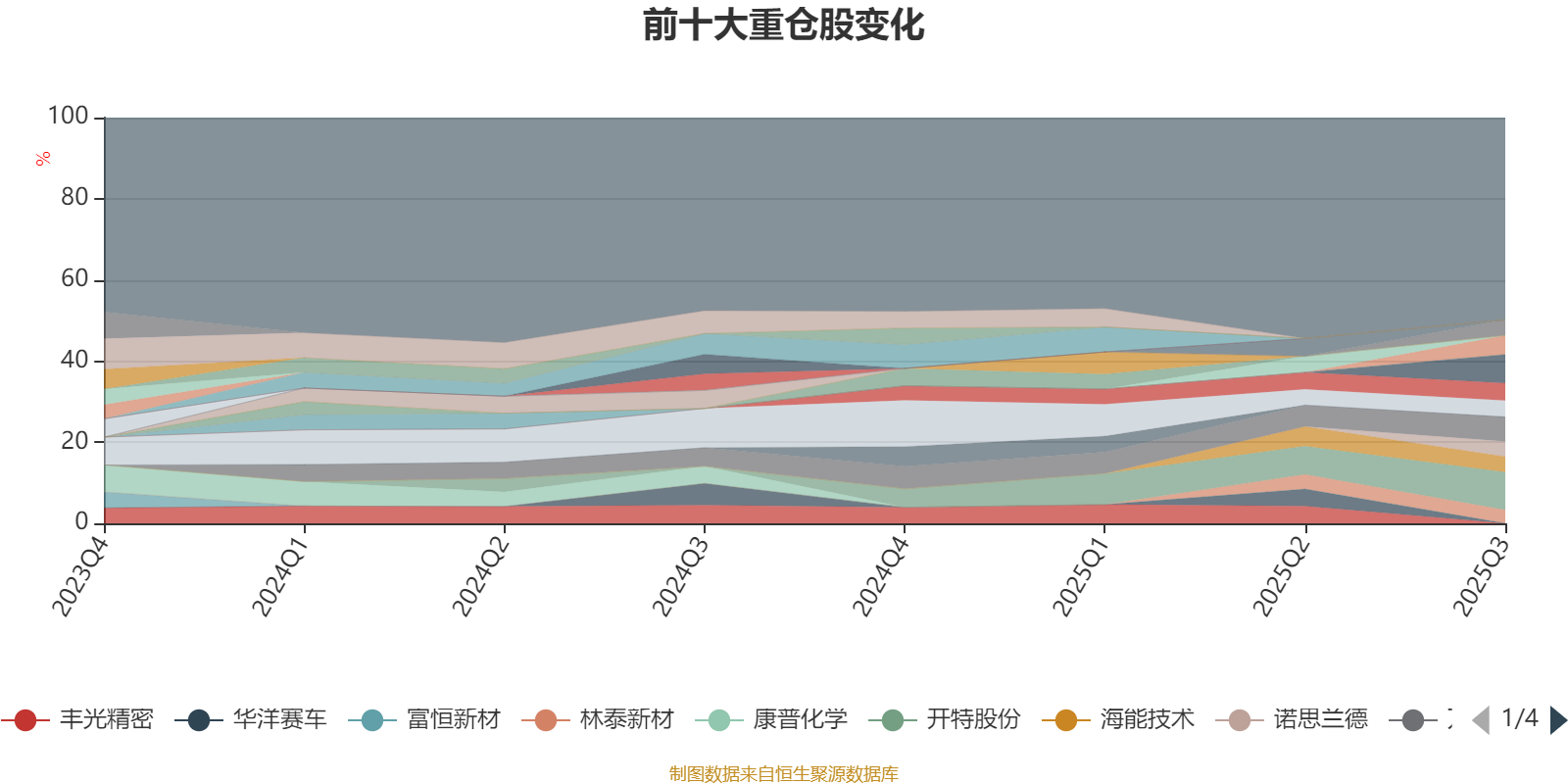 截至2025年三季度末,基金十大重仓股分别是开特股份、戈碧迦、万通液压、广信科技、纳科诺尔、苏轴股份、捷众科技、海能技术、诺思兰德、林泰新材。