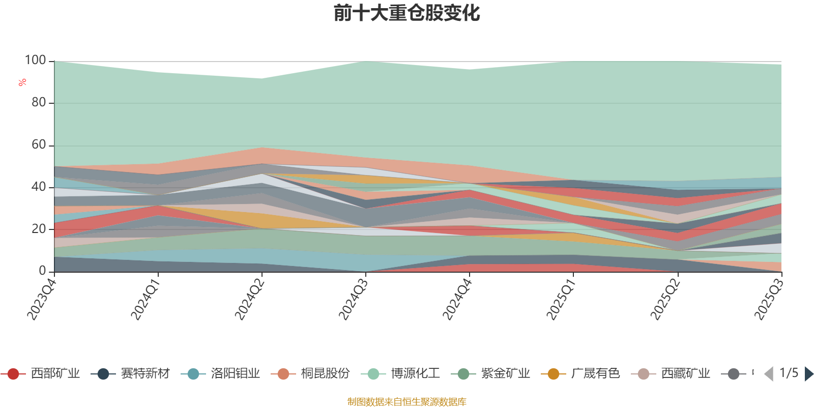 截至2025年三季度末,基金十大重仓股分别是江山股份、东方钽业、新凤鸣、万华化学、东岳集团、桐昆股份、巨化股份、锡业股份、博源化工、山东黄金。