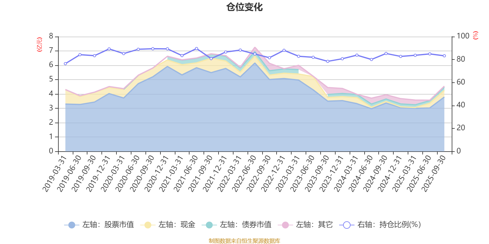 据定期报告数据统计,近三年平均股票仓位为83%,同类平均为85.48%。2021年上半年末基金达到89.6%的最高仓位,2019年一季度末最低,为76.45%。