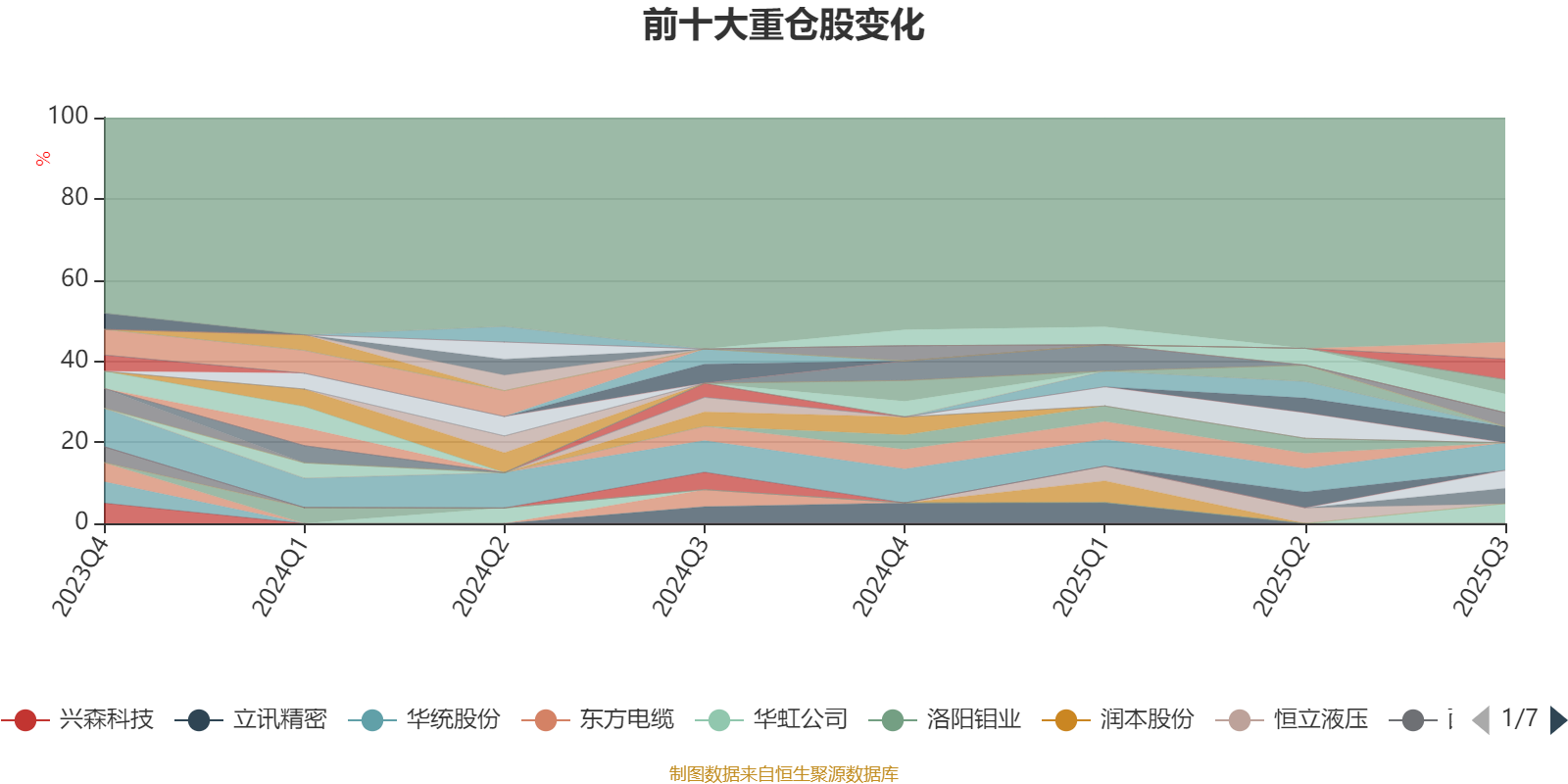 截至2025年三季度末,基金十大重仓股分别是海大集团、华友钴业、华虹公司、中芯国际、宇瞳光学、江山股份、鼎龙股份、博源化工、兴发集团、麦格米特。