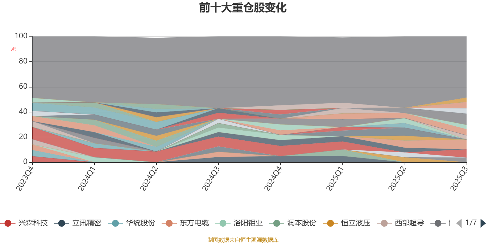 截至2025年三季度末,基金十大重仓股分别是阿里巴巴-W、腾讯控股、海大集团、华友钴业、中芯国际、华虹半导体、博源化工、兴发集团、江山股份、麦格米特。