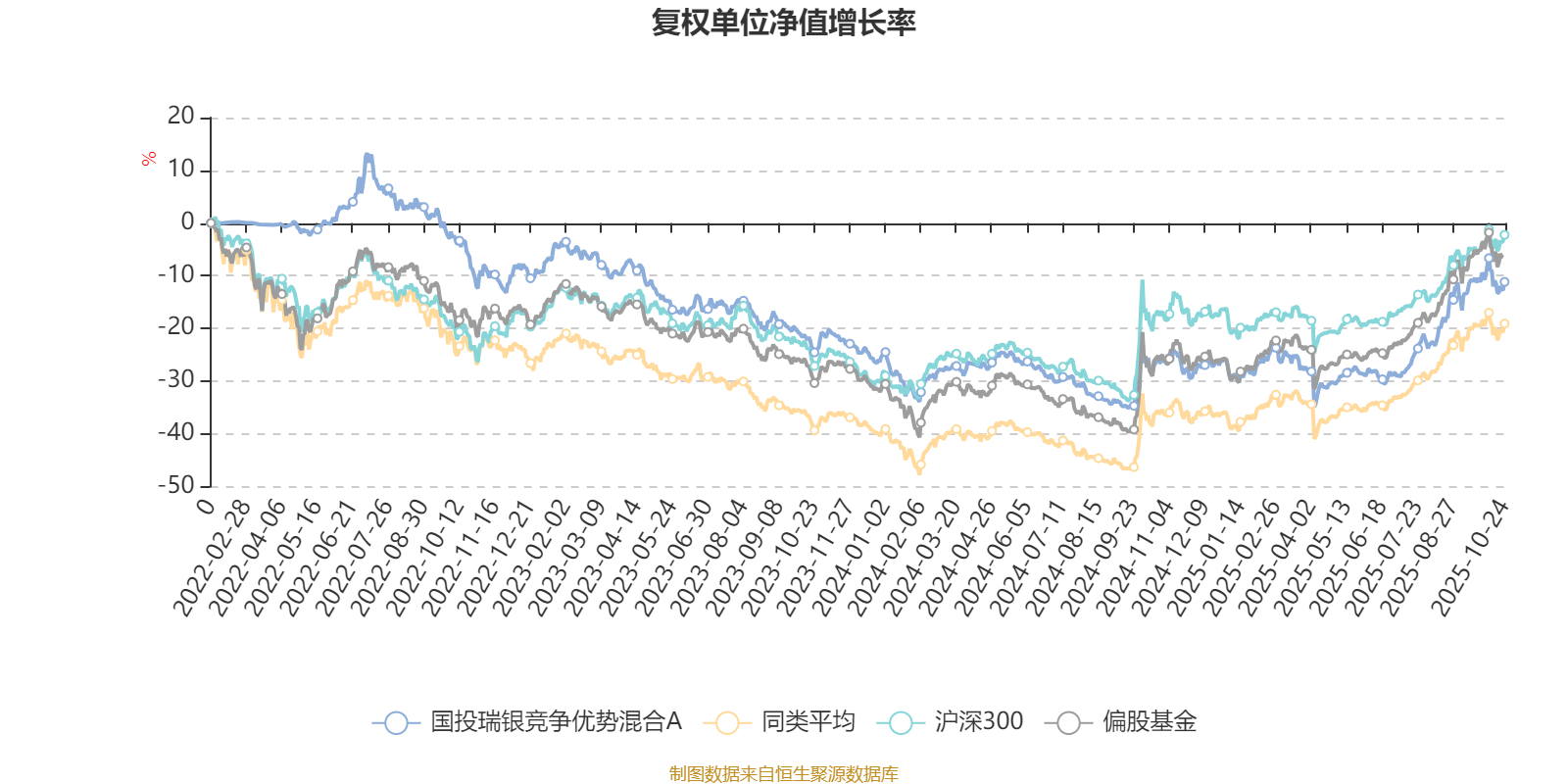 截至10月24日,国投瑞银竞争优势混合A近三个月复权单位净值增长率为15.12%,位于同类可比基金282/689;近半年复权单位净值增长率为27.34%,位于同类可比基金323/688;近一年复权单位净值增长率为20.87%,位于同类可比基金414/653;近三年复权单位净值增长率为-2.93%,位于同类可比基金260/363。