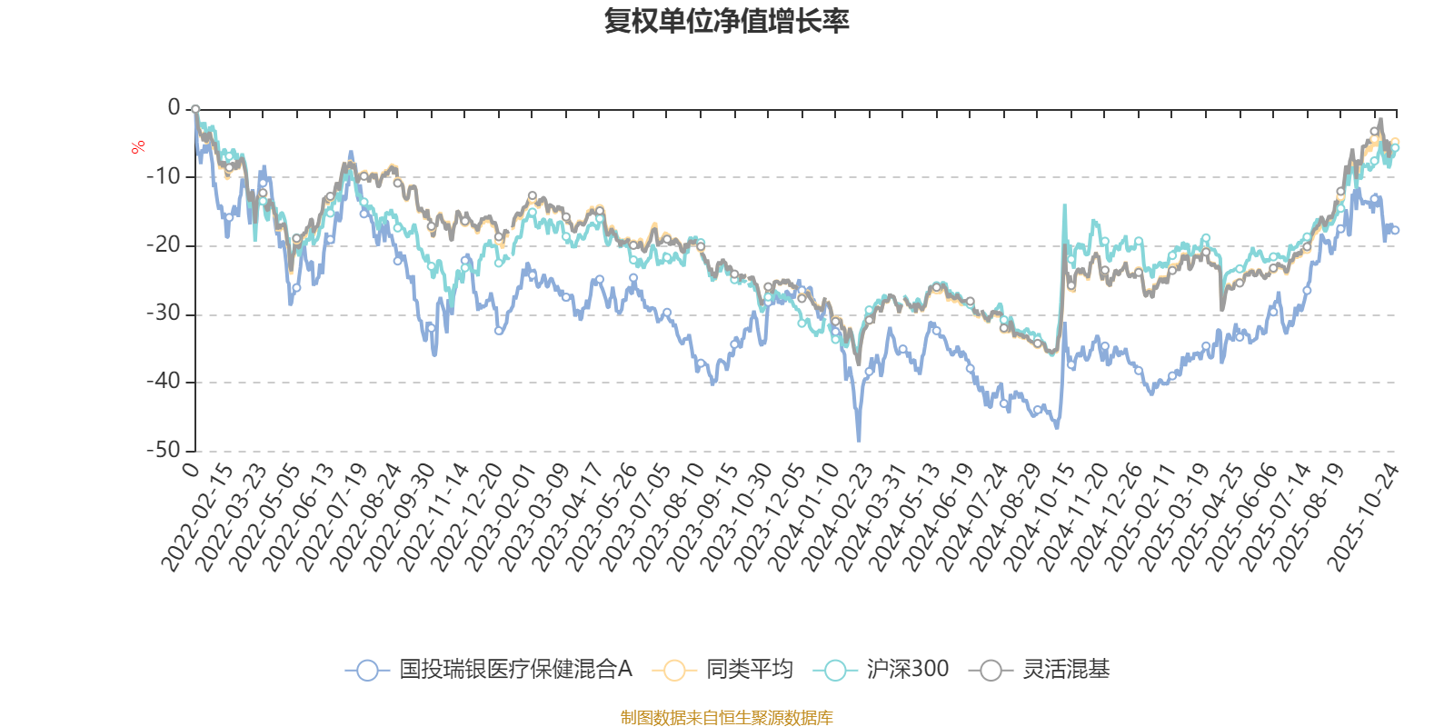 截至10月24日,国投瑞银医疗保健混合A近三个月复权单位净值增长率为5.71%,位于同类可比基金872/1287;近半年复权单位净值增长率为21.04%,位于同类可比基金692/1287;近一年复权单位净值增长率为29.03%,位于同类可比基金460/1287;近三年复权单位净值增长率为20.50%,位于同类可比基金479/1286。