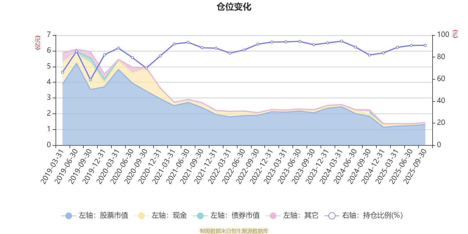 据定期报告数据统计,近三年平均股票仓位为90.46%,同类平均为72.19%。2024年一季度末基金达到94.47%的最高仓位,2019年三季度末最低,为59.43%。