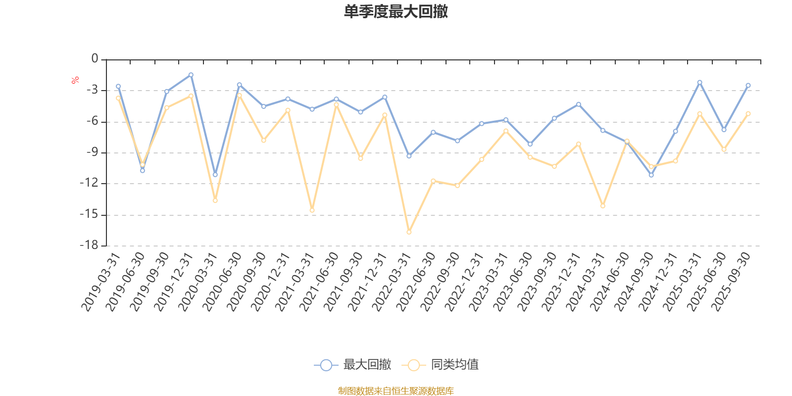 截至10月24日,基金近三年最大回撤为19.25%,同类可比基金排名264/1283。单季度最大回撤出现在2024年三季度,为11.17%。