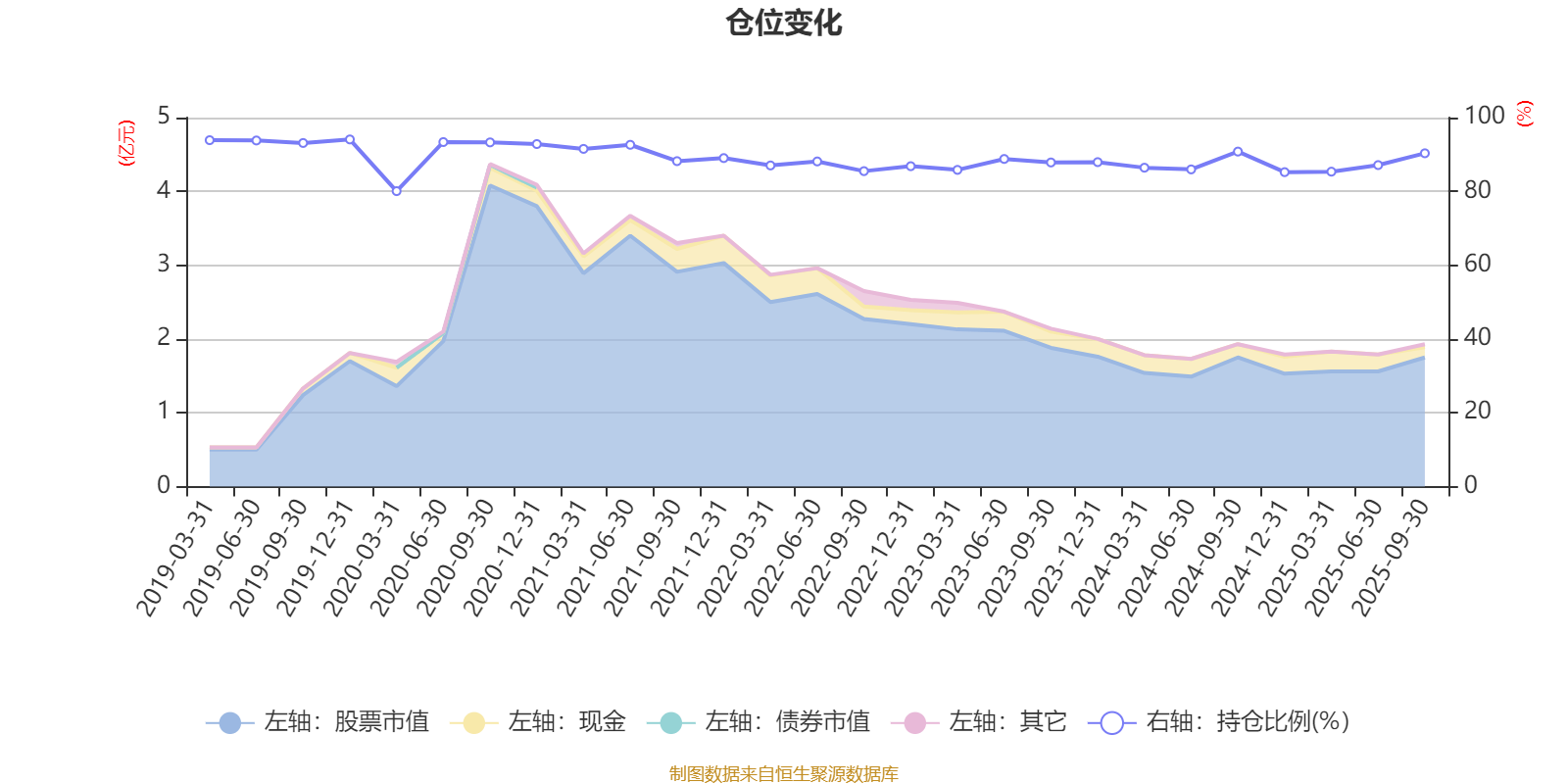 基金管理人在三季报中表示,三季度的操作上,高仓位未做择时,围绕估值合理的优质制造业公司构建的核心持仓未变,边际上参与轮动行情。商品方向上,在原有的金铜方向上继续加仓钴等有色品种,加仓了估值合理 ROE 进入拐点的化工方向,科技方向上,加仓了底部拐点迹象的新能源和固态电池方向,加仓半导体晶圆厂和存储,在较高位置兑现了部分股份银行,创新药,和部分高位算力标的。