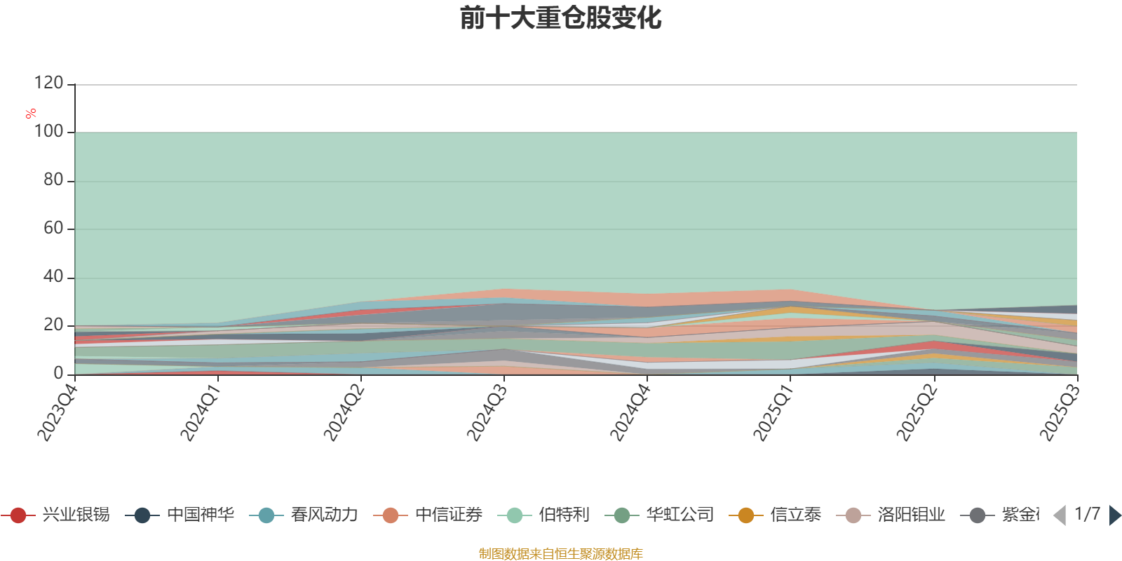 截至2025年三季度末,基金十大重仓股分别是锡装股份、宁德时代、农业银行、华虹公司、中芯国际、复旦微电、华友钴业、金风科技、三一重工、紫金矿业。