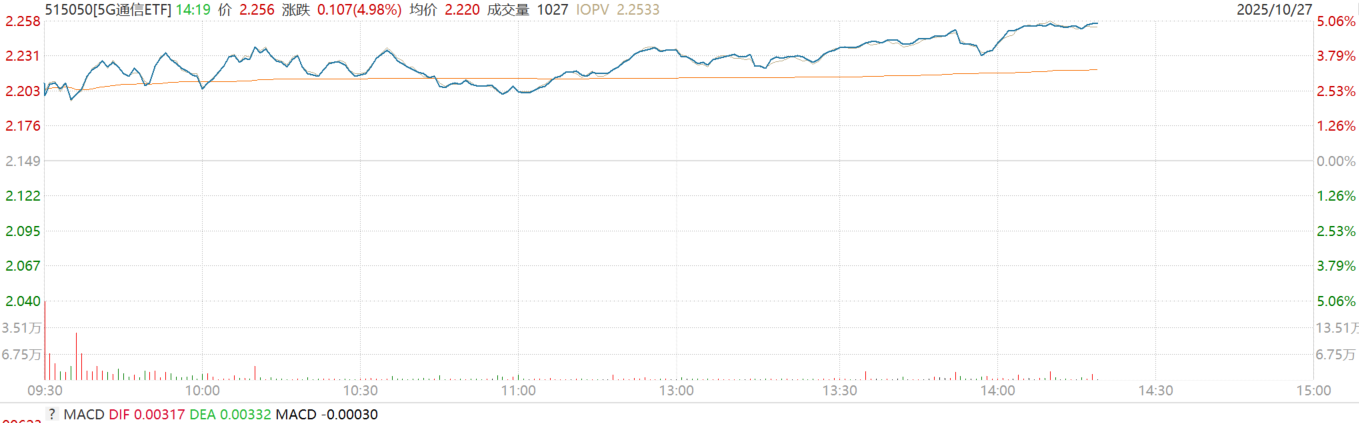 5G通信ETF(515050)盘中涨超5%领涨市场ETF,聚焦算力硬件龙头