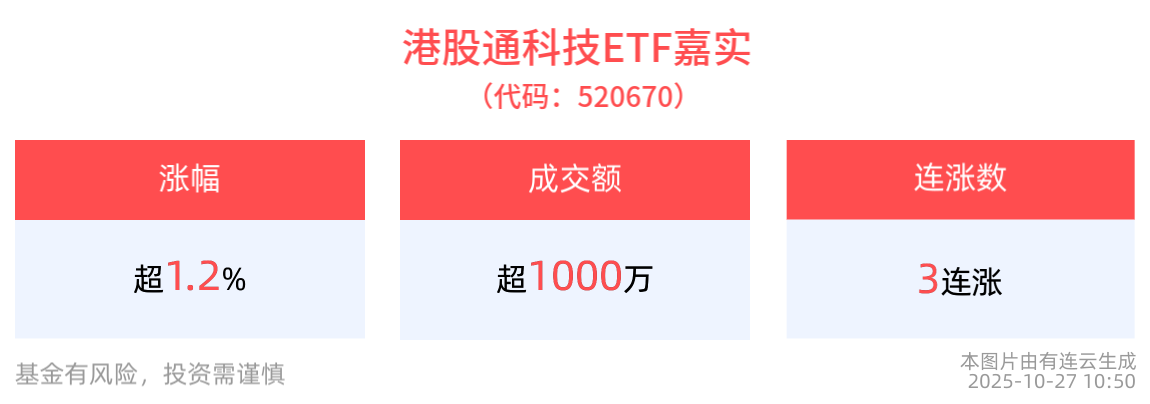 港股通科技ETF嘉实(520670)盘中涨超1.2%,冲击3连涨,成分股鸿腾精密涨超10%