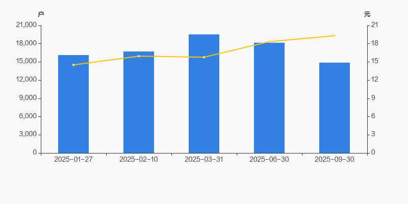 截至2025年9月30日,公司最新总股本为1.59亿股,其中流通股本为8910.88万股。户均持有流通股数量由上期的4906股上升至5987股,户均流通市值11.57万元。