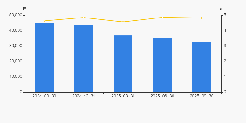 自2024年9月30日以来,公司股东户数连续4期下降,截至目前减幅为27.59%。2024年9月30日至2025年9月30日区间股价上涨3.81%。