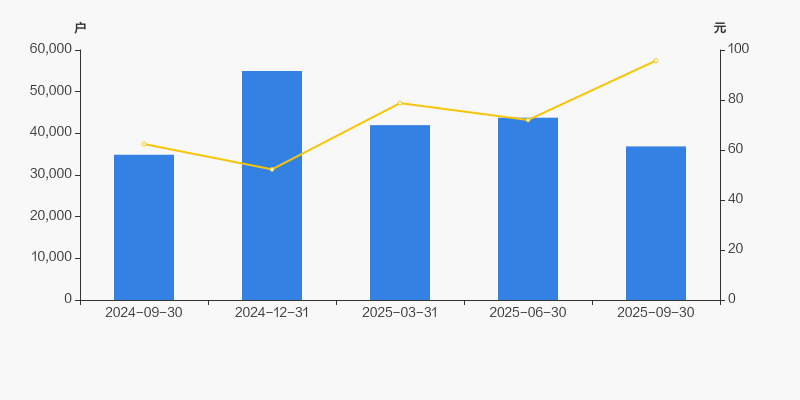2024年9月30日至今,公司股东户数有所增长,区间涨幅为5.73%。2024年9月30日至2025年9月30日区间股价上涨53.54%。