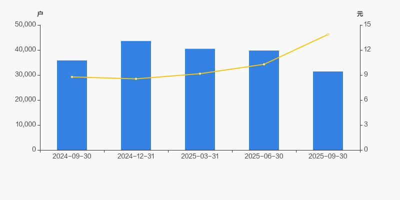 自2024年12月31日以来,公司股东户数连续3期下降,截至目前减幅为27.93%。2024年12月31日至2025年9月30日区间股价上涨62.41%。