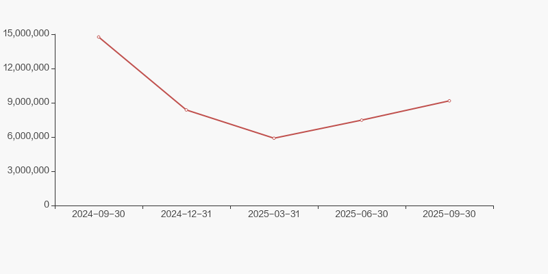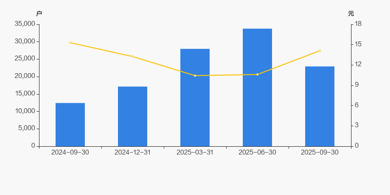 2024年9月30日至今,公司股东户数显著大幅增长,区间涨幅达84.69%。2024年9月30日至2025年9月30日区间股价下降7.87%。