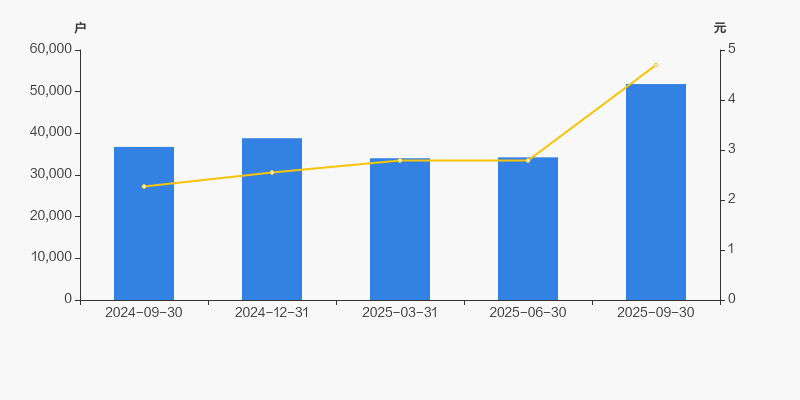 2024年9月30日至今,公司股东户数显著增长,区间涨幅为41.05%。2024年9月30日至2025年9月30日区间股价上涨107.05%。