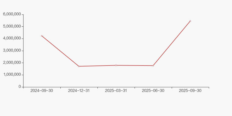 截至2025年9月30日,公司最新总股本为4.3亿股,其中流通股本为1.69亿股。户均持有流通股数量由上期的1.3万股下降至1.23万股,户均流通市值43.67万元。