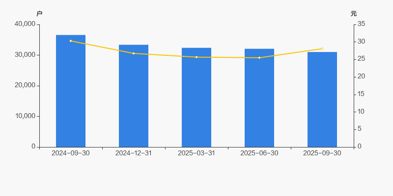 自2024年9月30日以来,公司股东户数连续4期下降,截至目前减幅为15.20%。2024年9月30日至2025年9月30日区间股价下降7.34%。