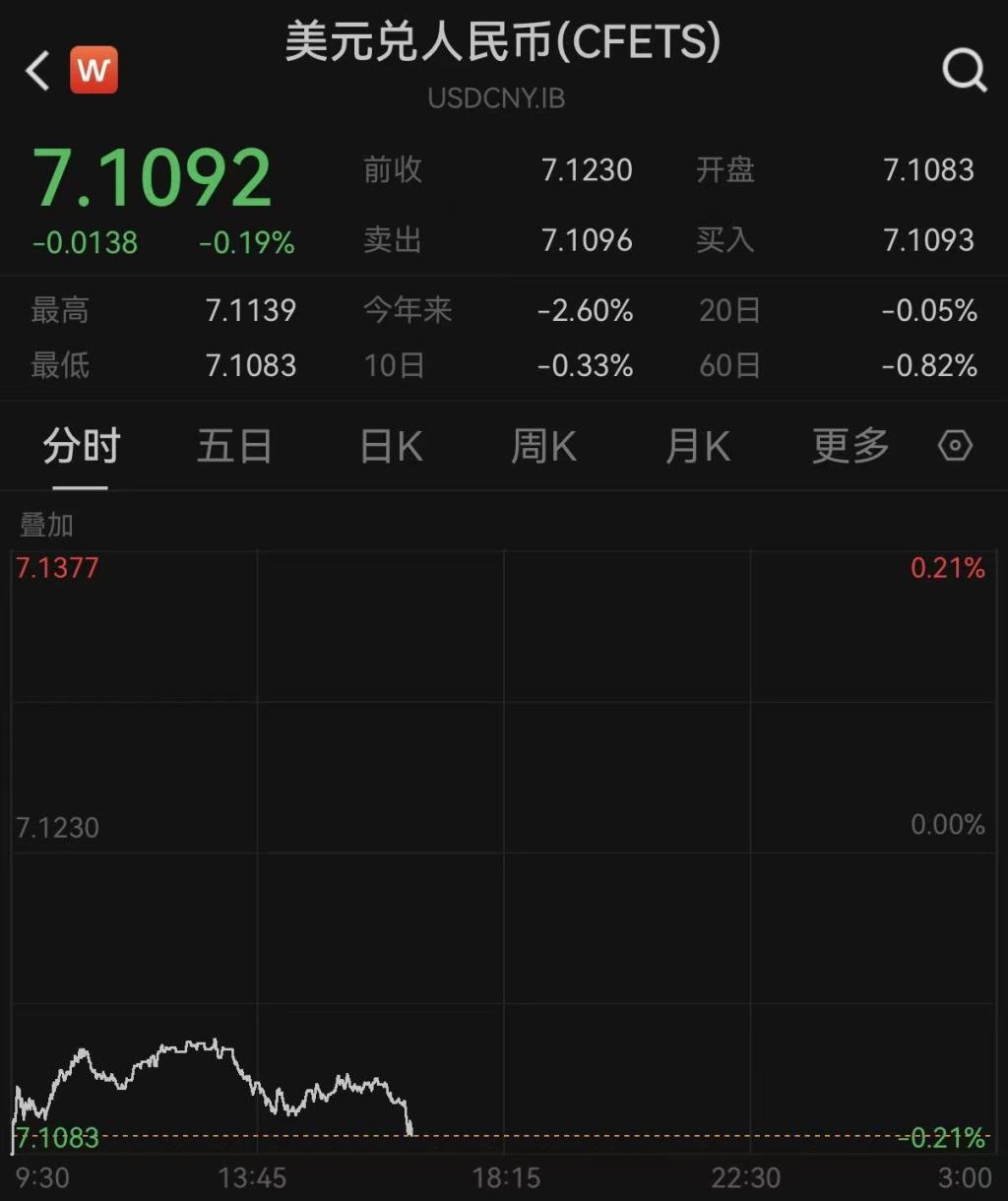 人民币对美元汇率在在岸和离岸市场双双升破7.11关口。