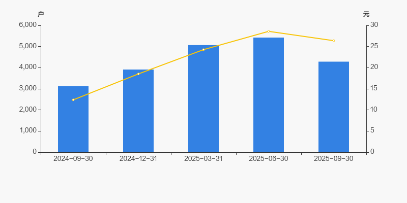 截至2025年9月30日,公司最新总股本为7095.34万股,其中流通股本为4411.96万股。户均持有流通股数量由上期的7860股上升至1.03万股,户均流通市值27.17万元。