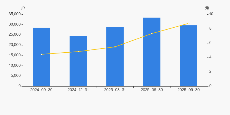 2024年9月30日至今,公司股东户数有所增长,区间涨幅为4.31%。2024年9月30日至2025年9月30日区间股价上涨96.90%。