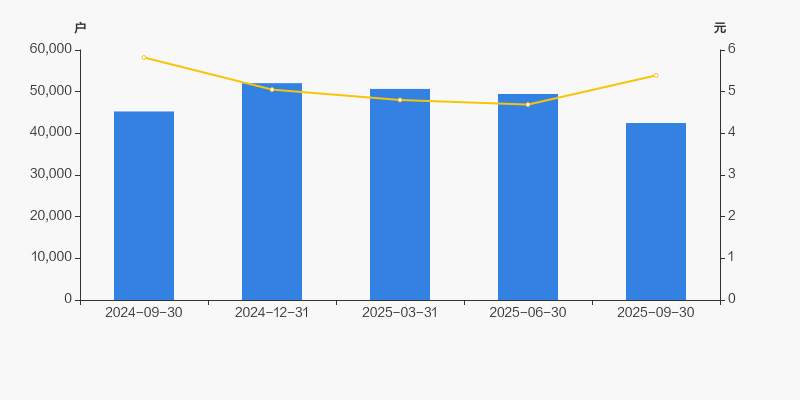 截至2025年9月30日,公司最新总股本为21.47亿股,且均为流通股。户均持有流通股数量由上期的4.34万股上升至5.05万股,户均流通市值27.24万元。