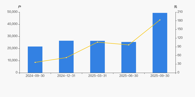2024年9月30日至今,公司股东户数成倍增长,区间涨幅达128.20%。2024年9月30日至2025年9月30日区间股价上涨408.62%。