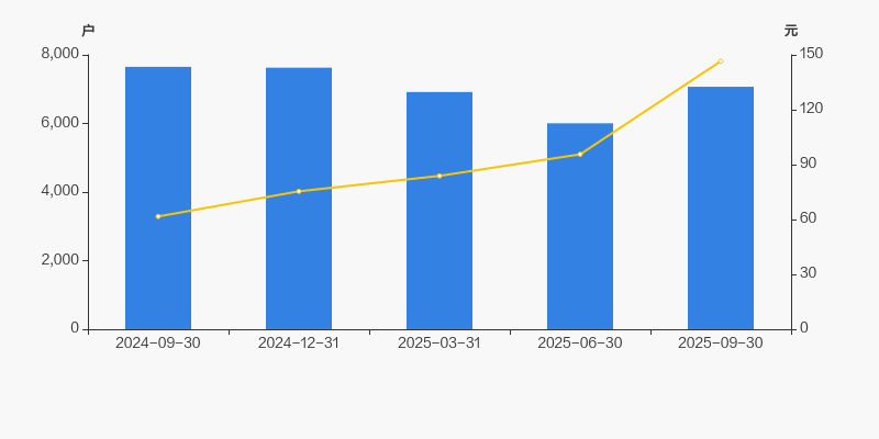 2024年9月30日至今,公司股东户数有所下降,区间跌幅为7.59%。2024年9月30日至2025年9月30日区间股价上涨137.63%。