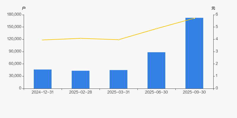 自2025年2月28日以来,公司股东户数连续3期上涨,截至目前增幅为298.11%。2025年2月28日至2025年9月30日区间股价上涨40.20%。