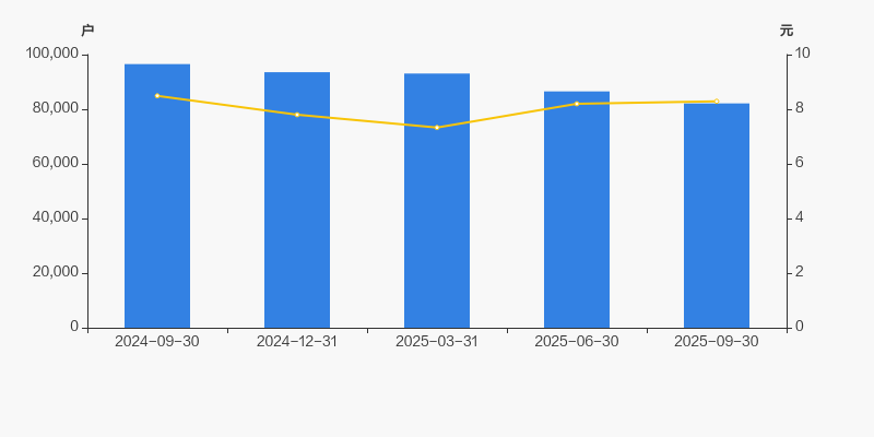 2024年9月30日至今,公司股东户数显著下降,区间跌幅为14.91%。2024年9月30日至2025年9月30日区间股价下降2.35%。