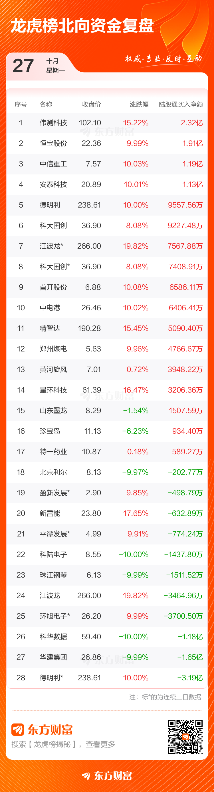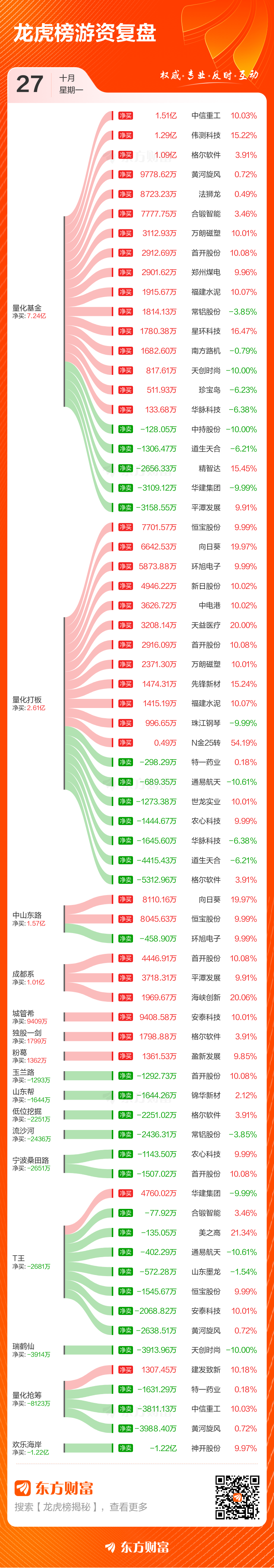 10月27日龙虎榜复盘:“城管希”9408.58万元净买入安泰科技