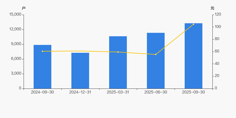 自2024年12月31日以来,公司股东户数连续3期上涨,截至目前增幅为82.70%。2024年12月31日至2025年9月30日区间股价上涨71.27%。