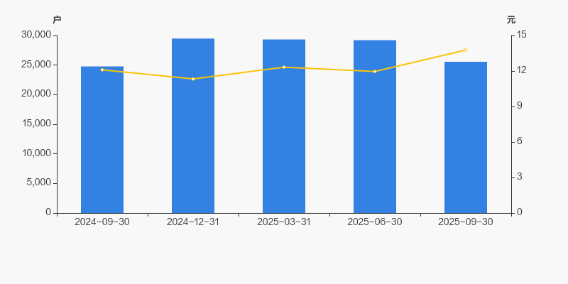 自2024年12月31日以来,公司股东户数连续3期下降,截至目前减幅为13.31%。2024年12月31日至2025年9月30日区间股价上涨21.56%。