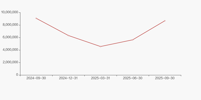 截至2025年9月30日,公司最新流通股本为5.62亿股。户均持有流通股数量由上期的6424股上升至7127股,户均流通市值13.04万元。
