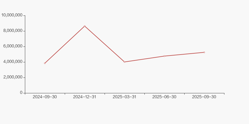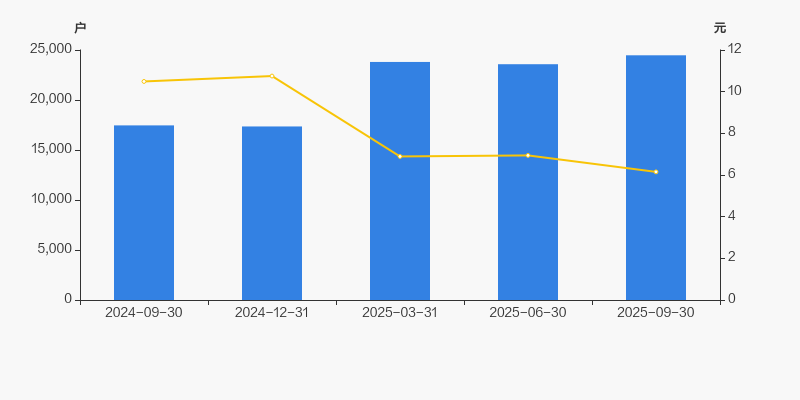 截至2025年9月30日,公司最新总股本为5.09亿股,其中流通股本为5.06亿股。户均持有流通股数量由上期的1.83万股上升至2.07万股,户均流通市值12.73万元。