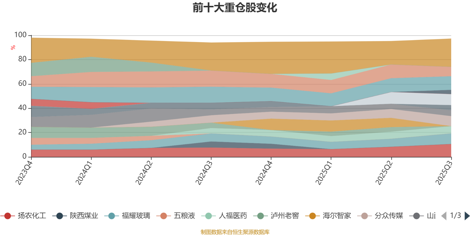 该基金持股集中度较高,且持股标的较为稳定,近2年前十大重仓股集中度长期超过60%。截至2025年三季度末,基金十大重仓股分别是腾讯控股、扬农化工、长江电力、福耀玻璃、分众传媒、美的集团、人福医药、山西汾酒、汇川技术、农夫山泉。