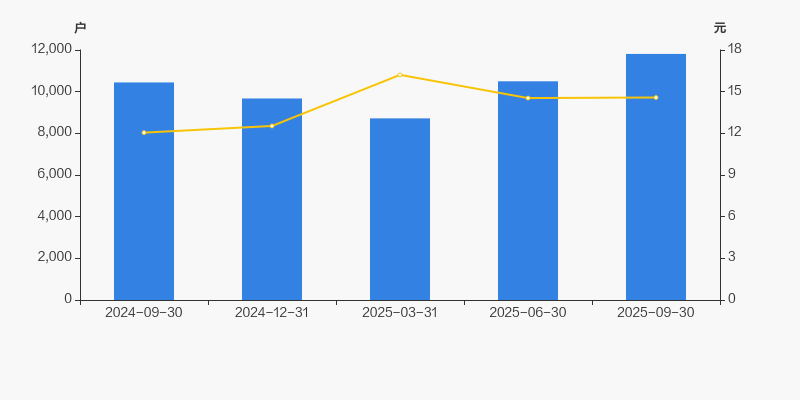 截至2025年9月30日,公司最新总股本为1.38亿股,其中流通股本为1.02亿股。户均持有流通股数量由上期的9693股下降至8615股,户均流通市值12.56万元。