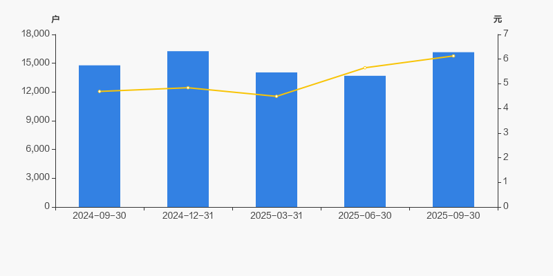 2024年9月30日至今,公司股东户数有所增长,区间涨幅为9.27%。2024年9月30日至2025年9月30日区间股价上涨30.70%。