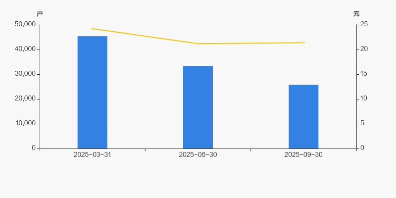 2025年3月31日至今,公司股东户数显著下降,区间跌幅为43.24%。2025年3月31日至2025年9月30日区间股价下降11.76%。