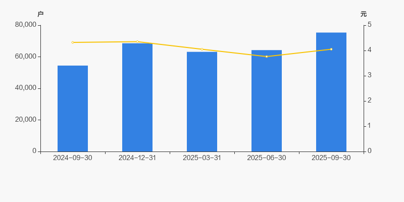截至2025年9月30日,公司最新总股本为14.59亿股,其中流通股本为11.8亿股。户均持有流通股数量由上期的1.84万股下降至1.57万股,户均流通市值6.34万元。