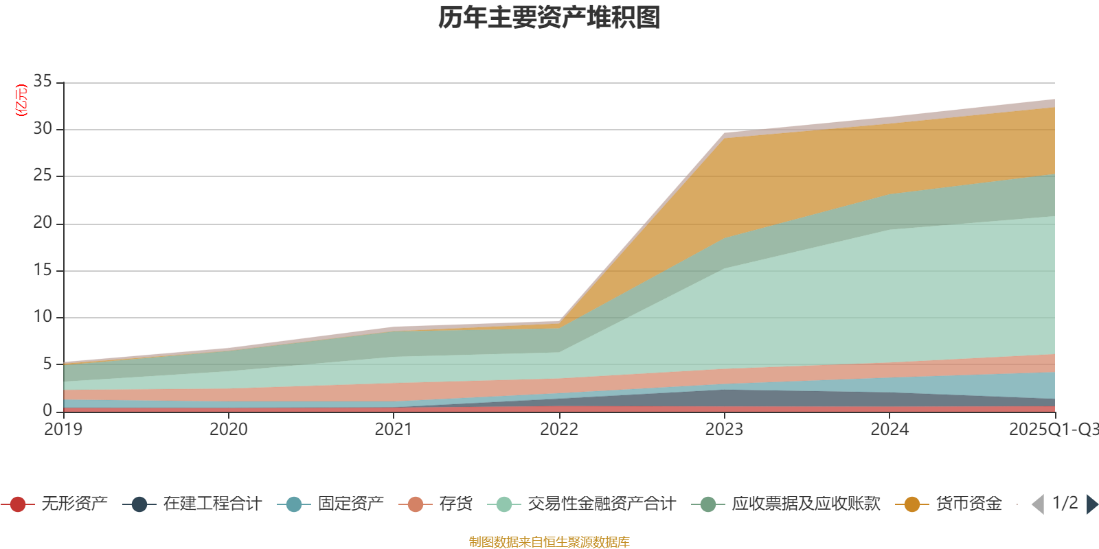 资产重大变化方面,截至2025年三季度末,公司固定资产较上年末增加81.08%,占公司总资产比重上升3.55个百分点;货币资金较上年末减少5.43%,占公司总资产比重下降2.6个百分点;在建工程合计较上年末减少48.15%,占公司总资产比重下降2.45个百分点;应收票据及应收账款较上年末增加18.86%,占公司总资产比重上升1.45个百分点。